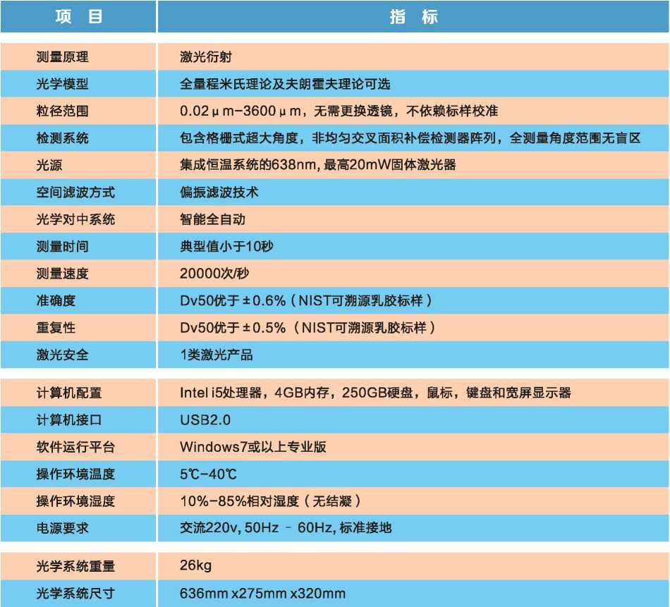 LT3600激光粒度儀主要技術(shù)參數(shù):